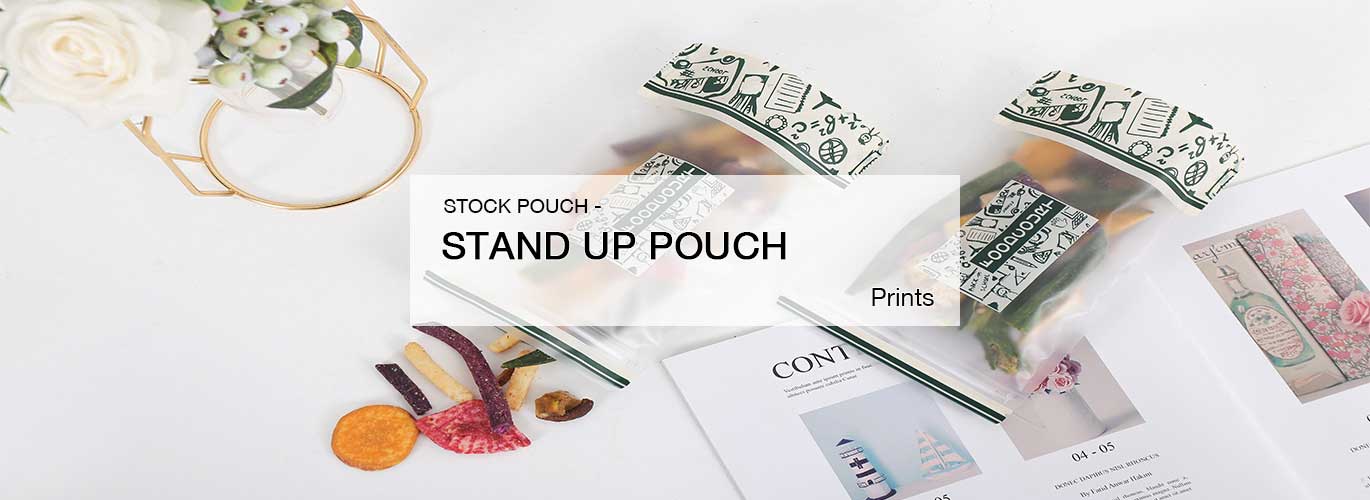 Clear Plastic Glossy Stand Up Pouch w/Patten Printing for Snacks
