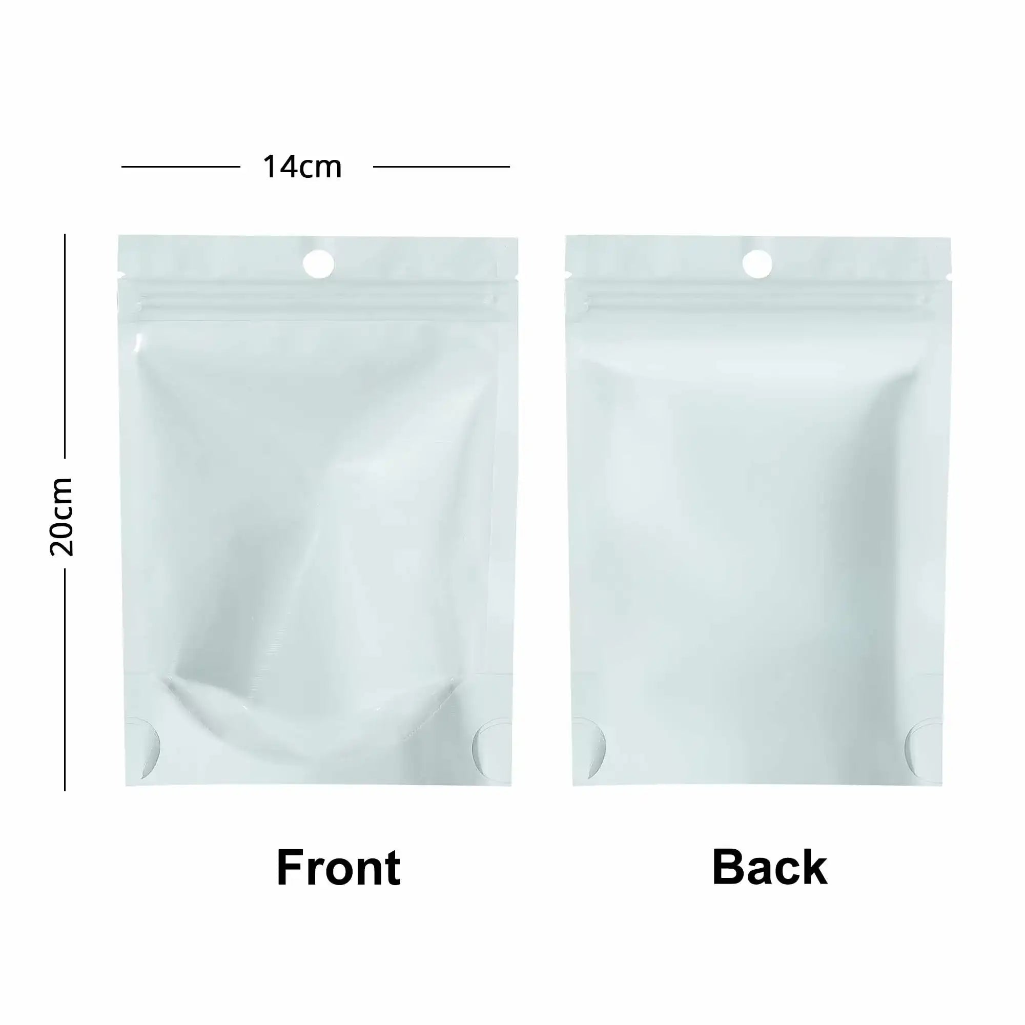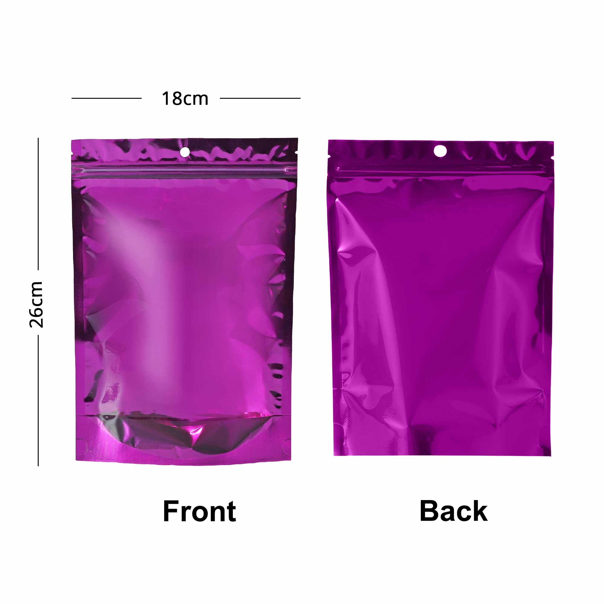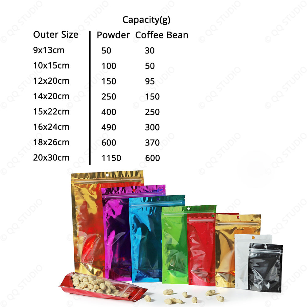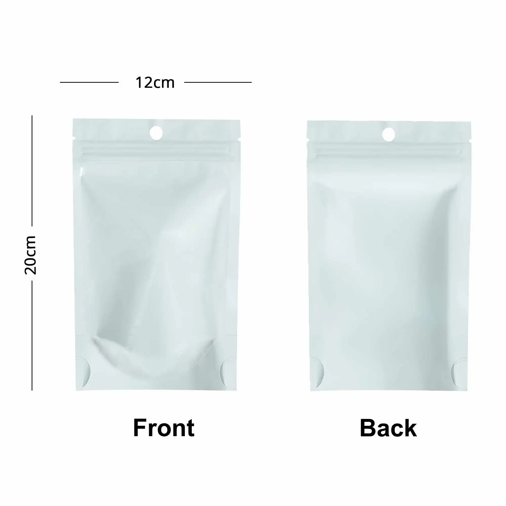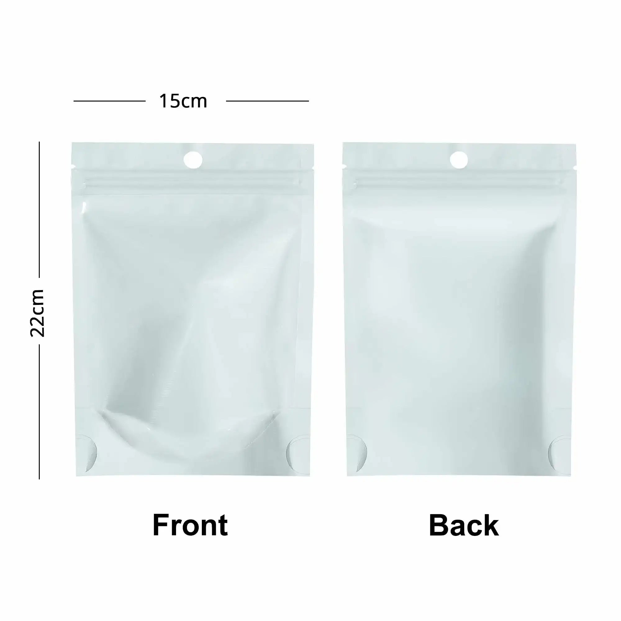 "Our custom printed glossy clear front color back mylar stand upward pouch(CPO-3305-1Kpcs) comes with a convenient hole to raise brand awareness. Features are as follows: