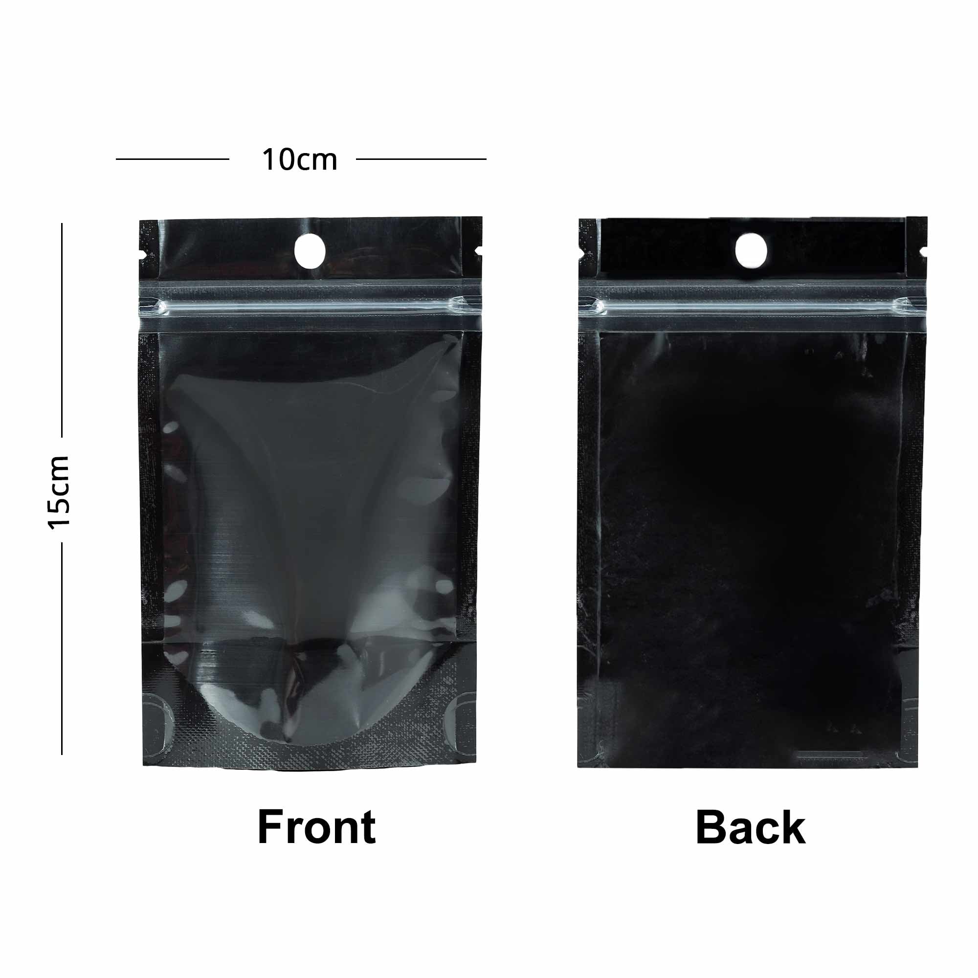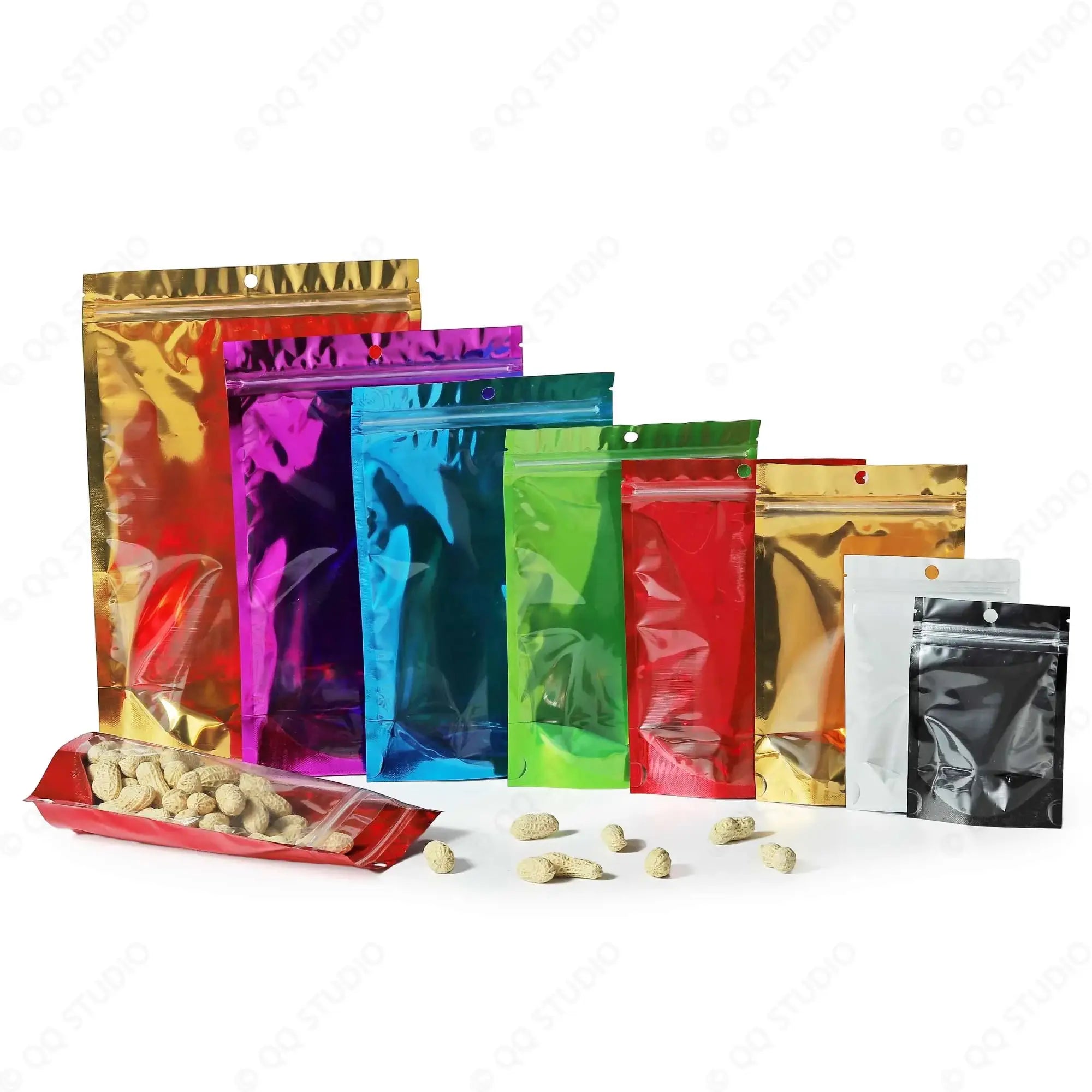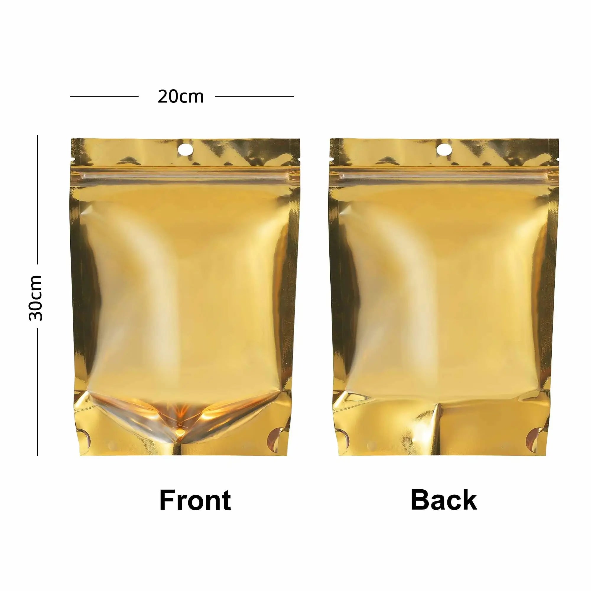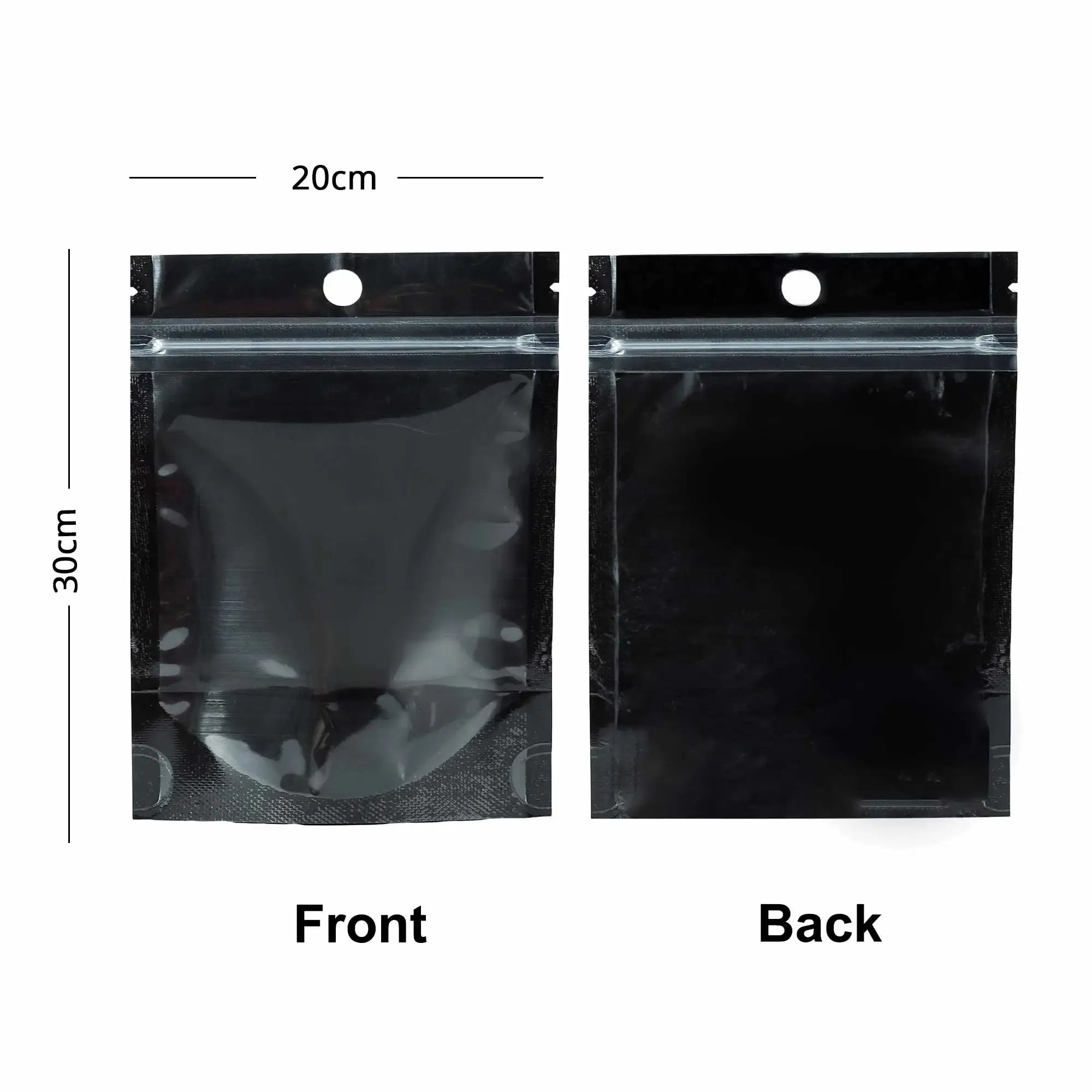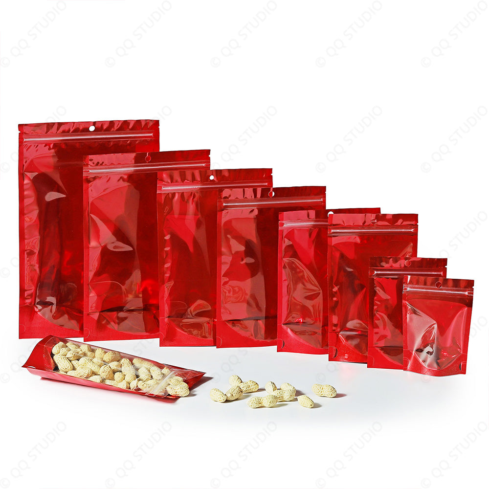 "Our custom printed glossy clear front color back mylar stand upward pouch(CPO-3305-1Kpcs) comes with a convenient hole to raise brand awareness. Features are as follows:
