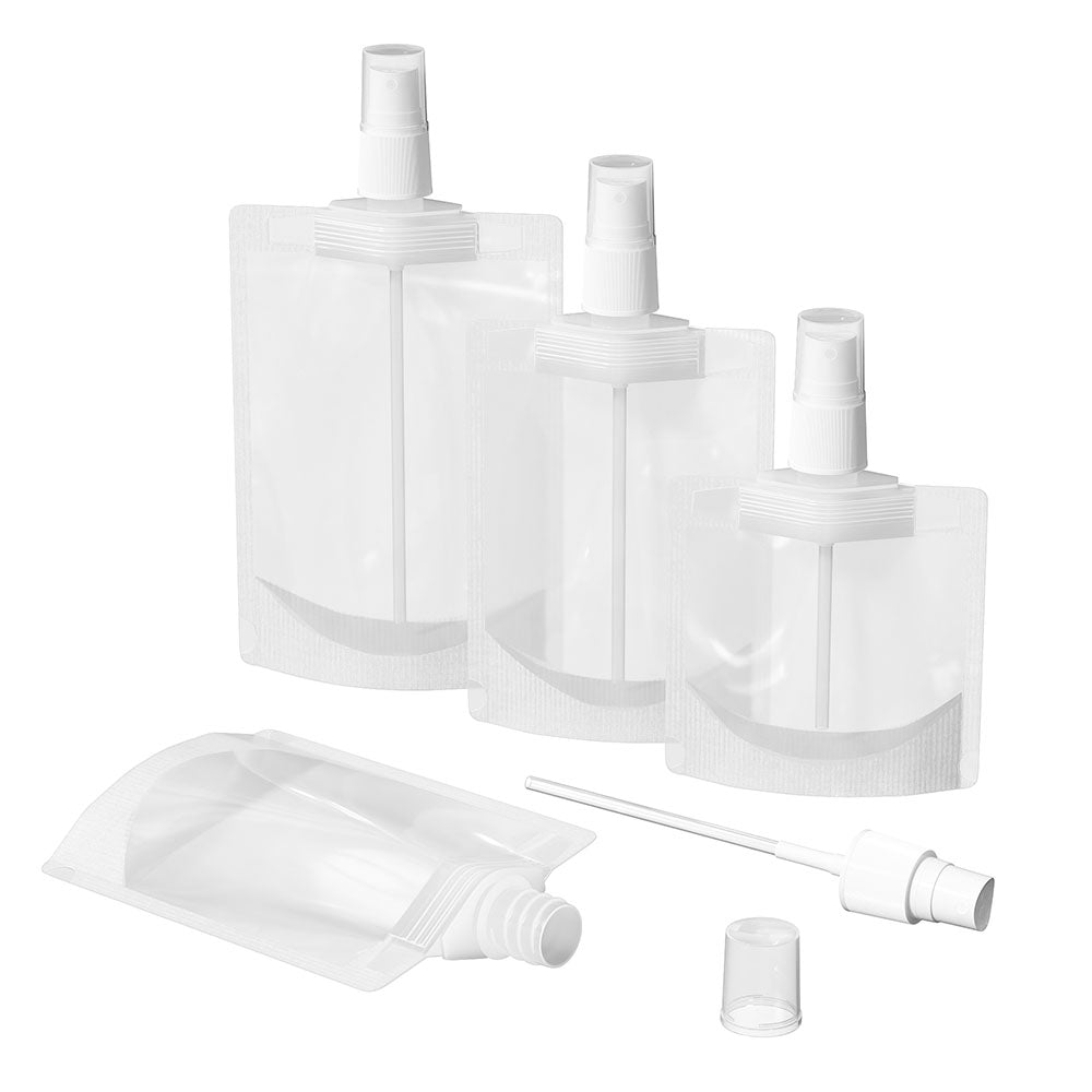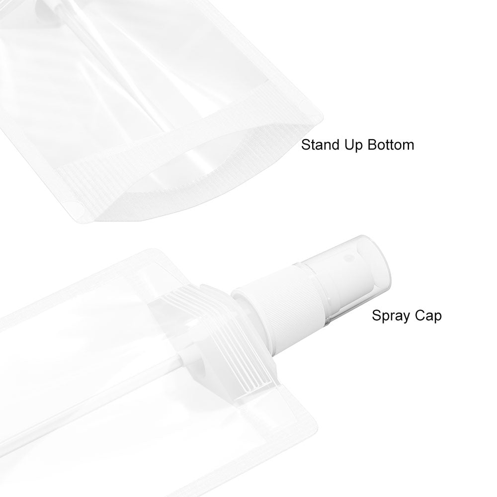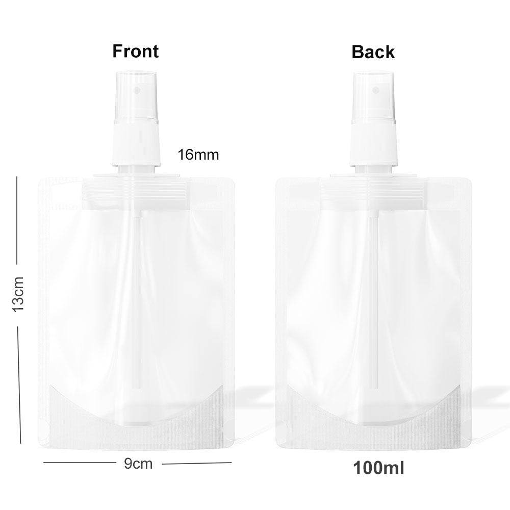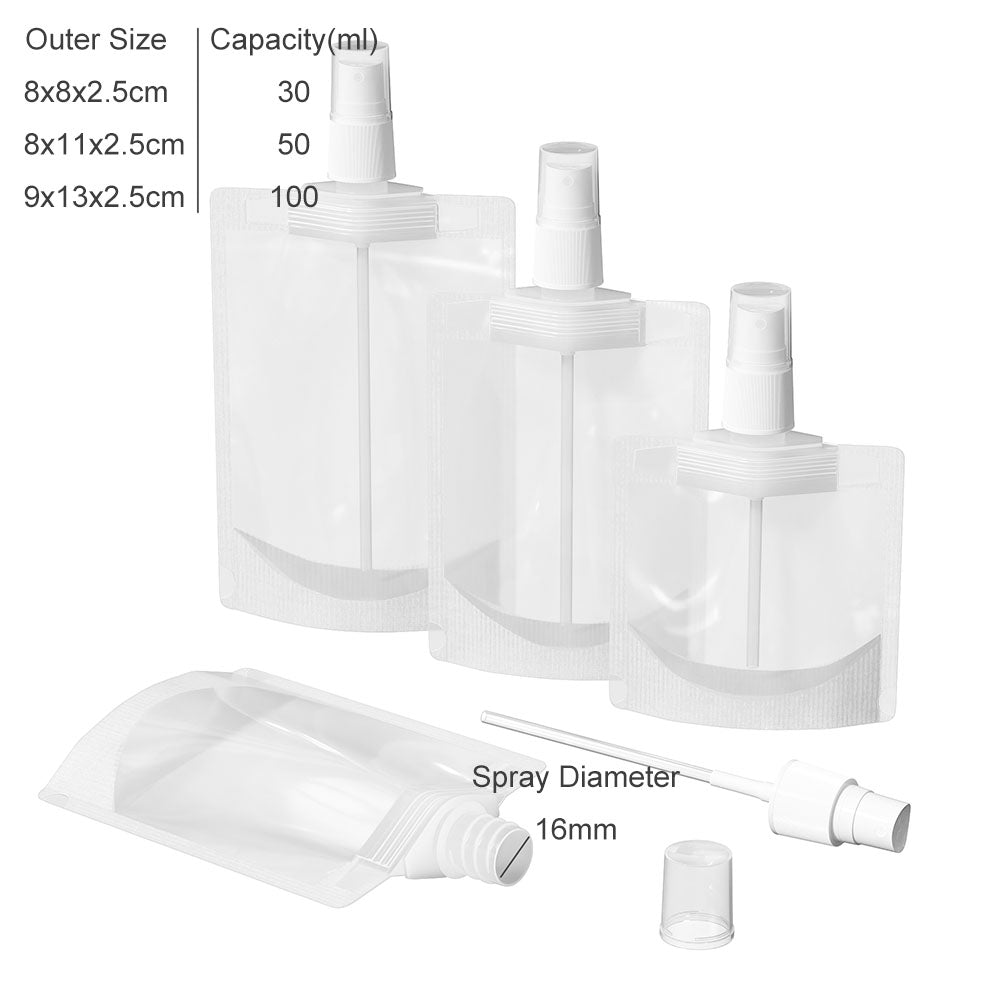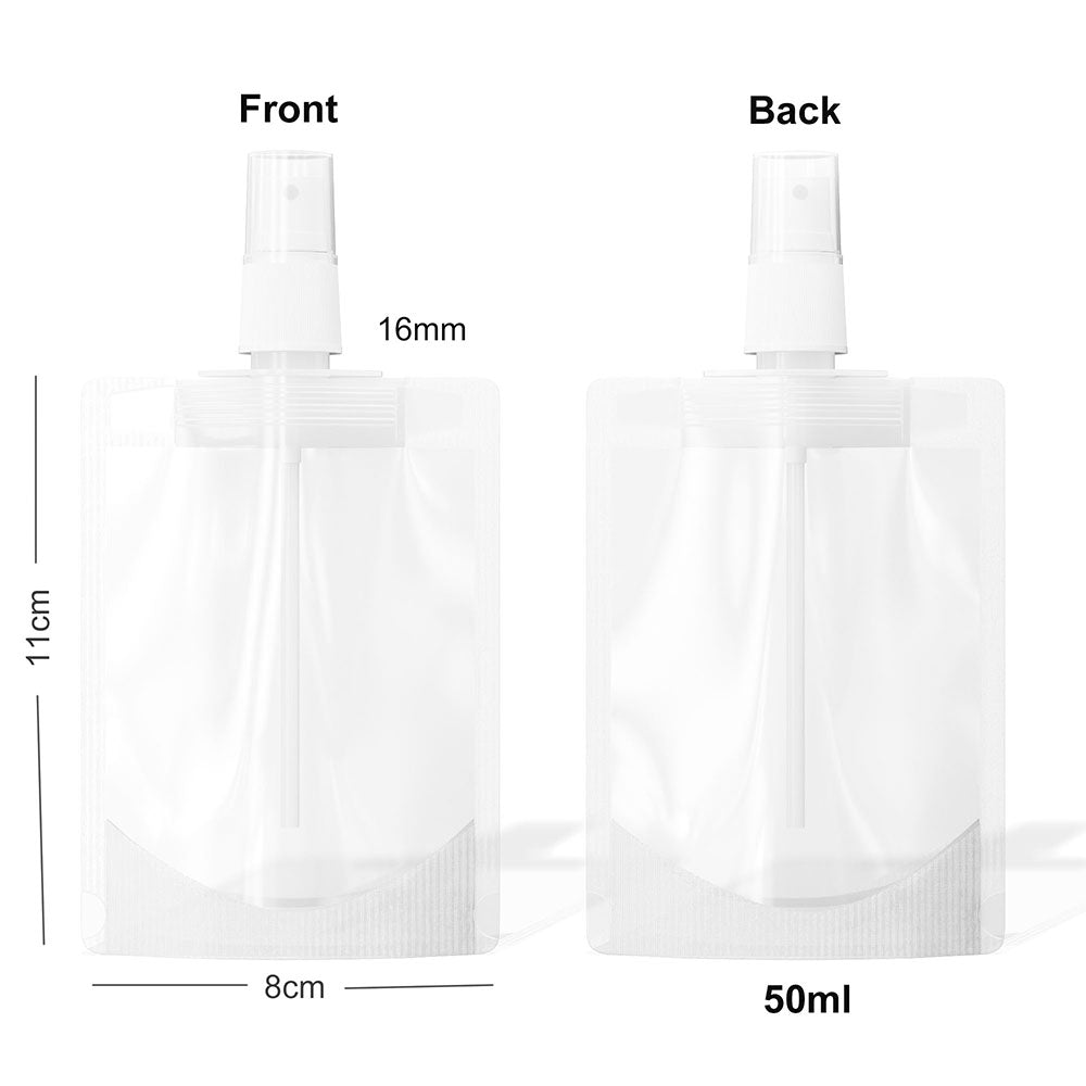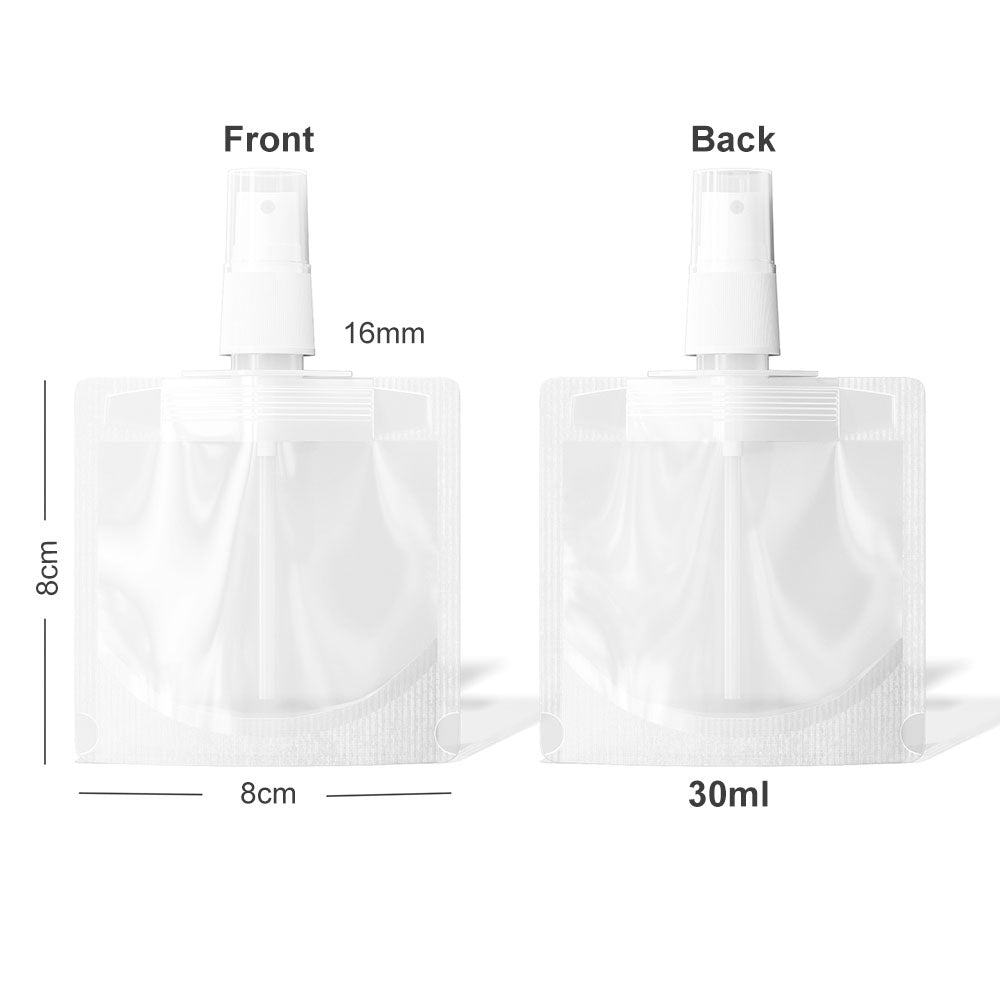 2. Spray Top: our spray pouch are equipped with a high quality spray, very easy to use and durable. multiple sizes: we offer 30ml and 50ml and 100ml pouches.