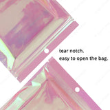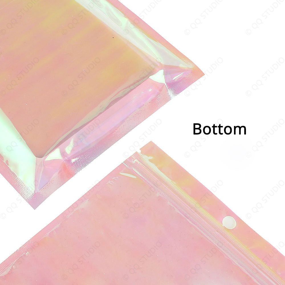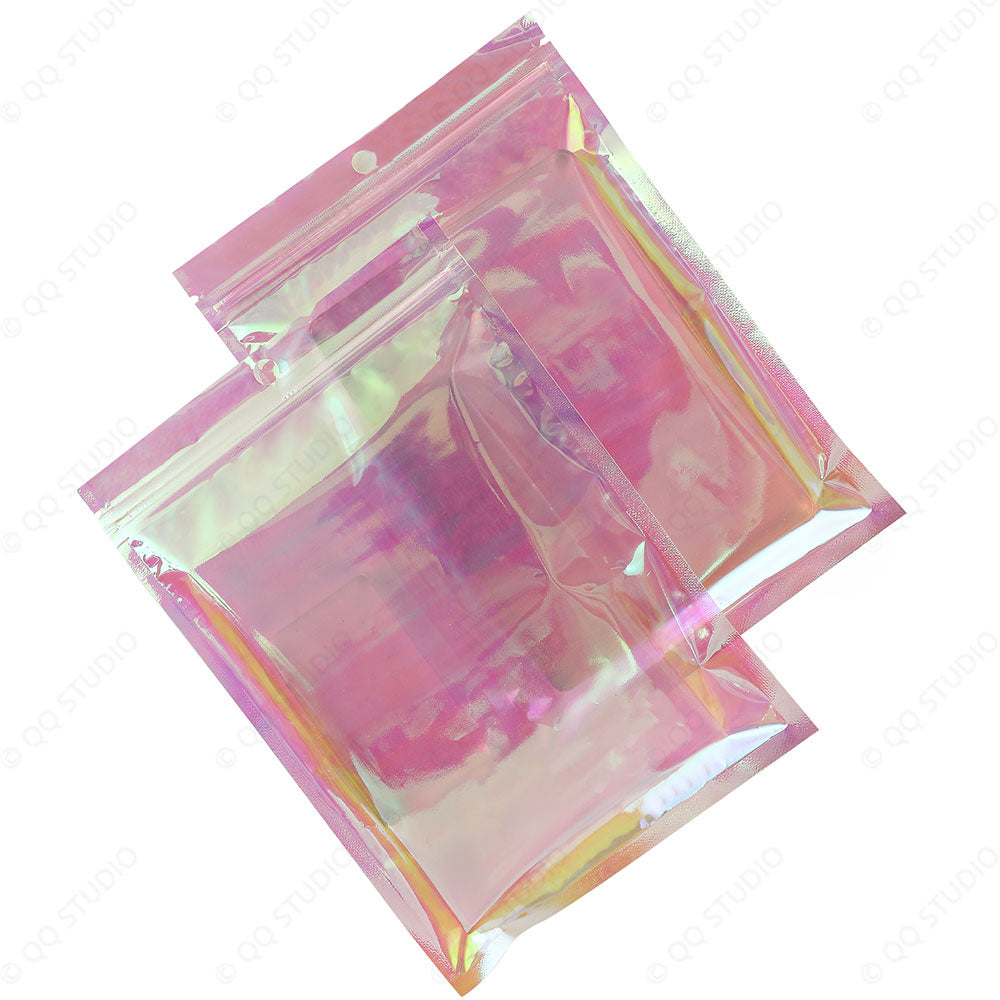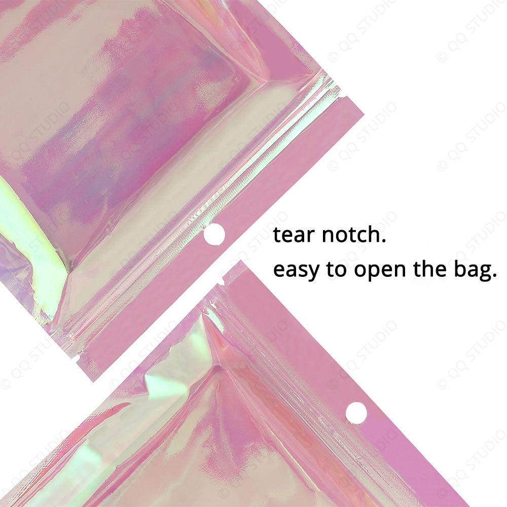 Introducing our double-face glossy holographic pink impressible zip lock bags with a convenient round hole(2238), designed to make your products stand come out while ensuring practicality. These bags are a perfect spinal fusion of style and functionality.