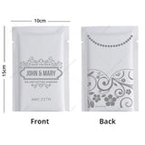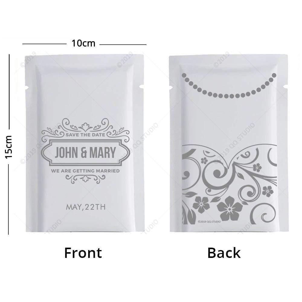 Welcome to our collection of stylish 10x15cm wedding Mylar three pull seal pouches (C01-103-Wedding). Crafted with jazz and care to detail, these pouches are the perfect packaging pull for your wedding party favors, gifts, and unusual special items.